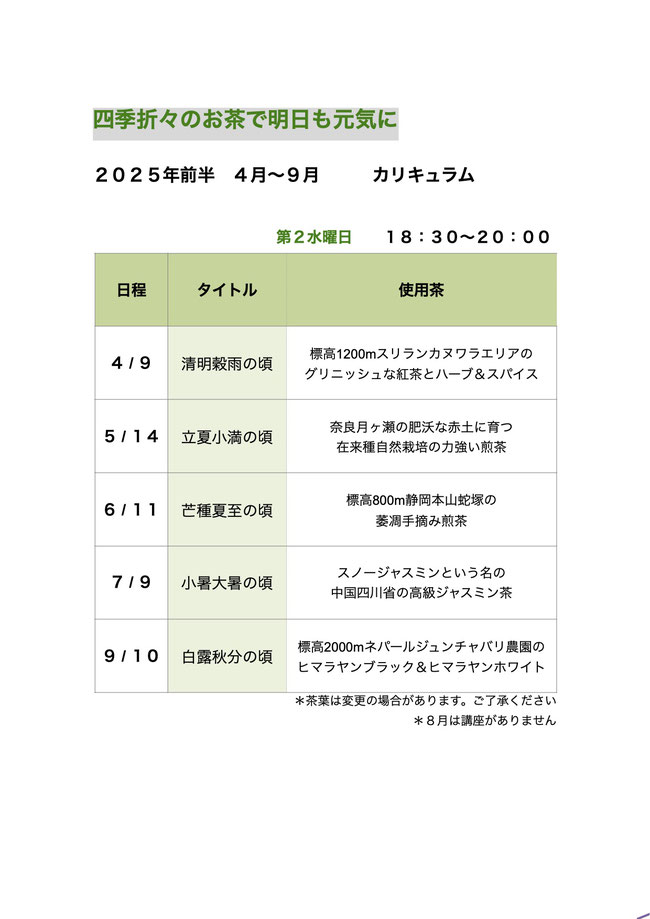 ところで、美味しいと感じる味も何とかしたい症状も、人それぞれ。自分の身体に耳を傾けて、自分が今必要としているティーをブレンドできるといいですね。そんな時はそのティーが身体の隅々まで染み渡り、とても美味しく飲めますよ。